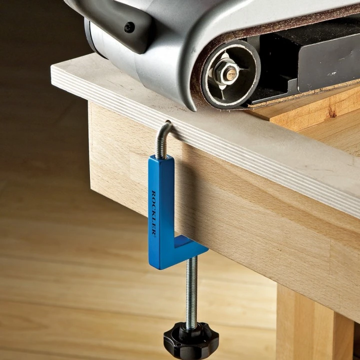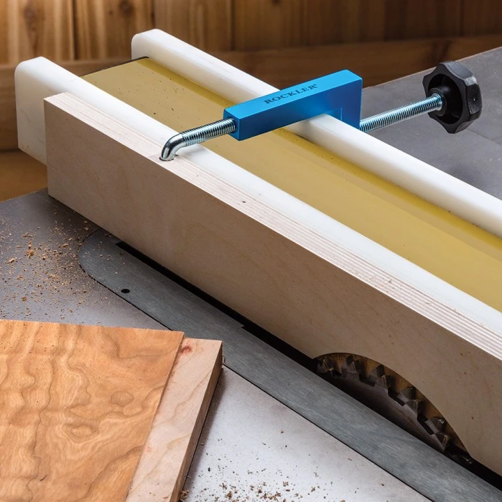 Permet de fixer un guide auxiliaire fait en atelier à un guide existant sans que le serre-joint ne vienne gêner la pièce à travailler.