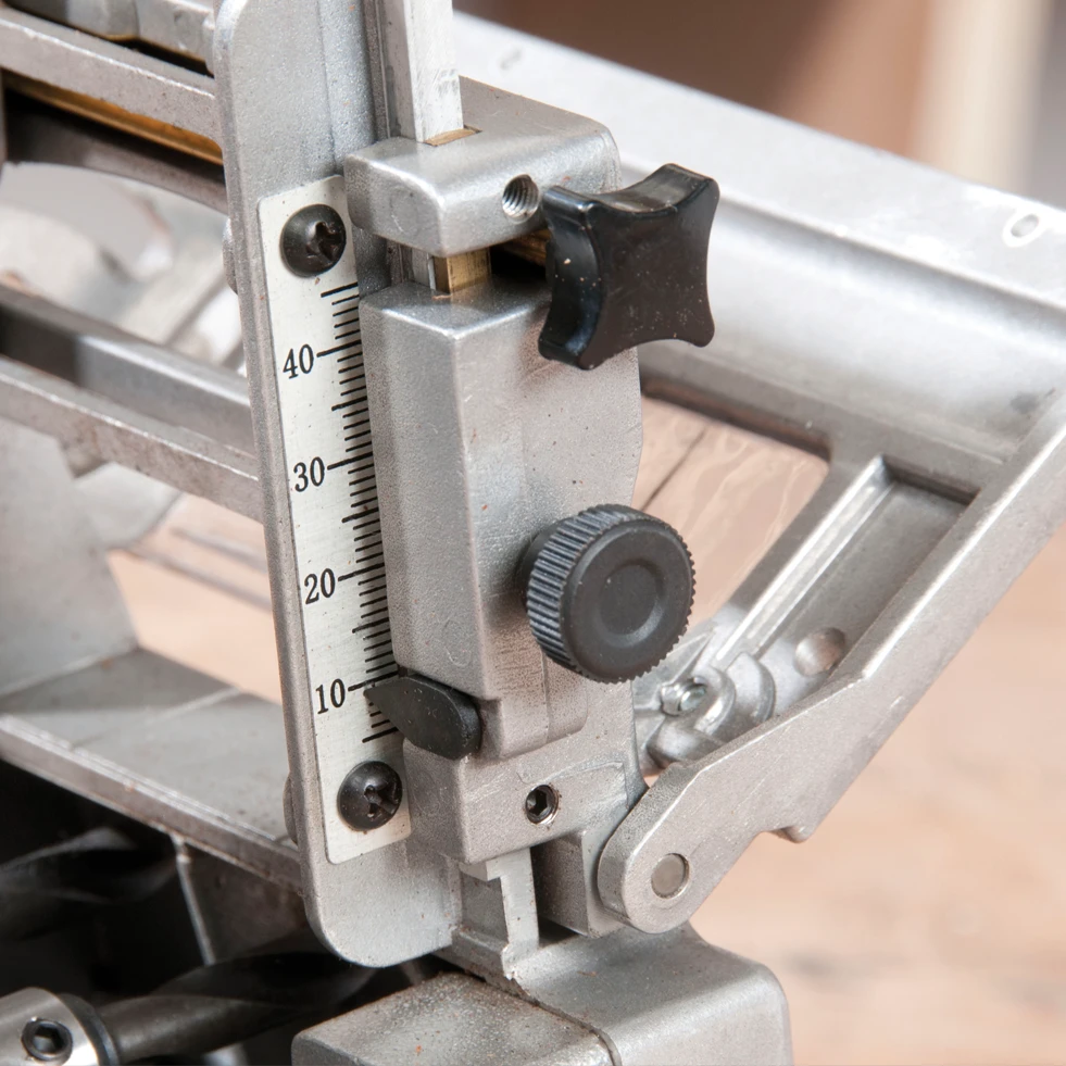 Perçage double simultané de trous pour assemblage par chevilles (32 mm d’écart centre à centre). Guide de perçage entièrement réglable de 0 à 90° pour des perçages sous divers angles d’inclinaison. Système de réglage de la hauteur de perçage par crémaillère. Fenêtre transparente calibrée pour une mise en place parfaite et un travail précis. Broches antidérapantes rétractables pour stabiliser l’appareil lors du perçage. 2 forets 8 mm inclus