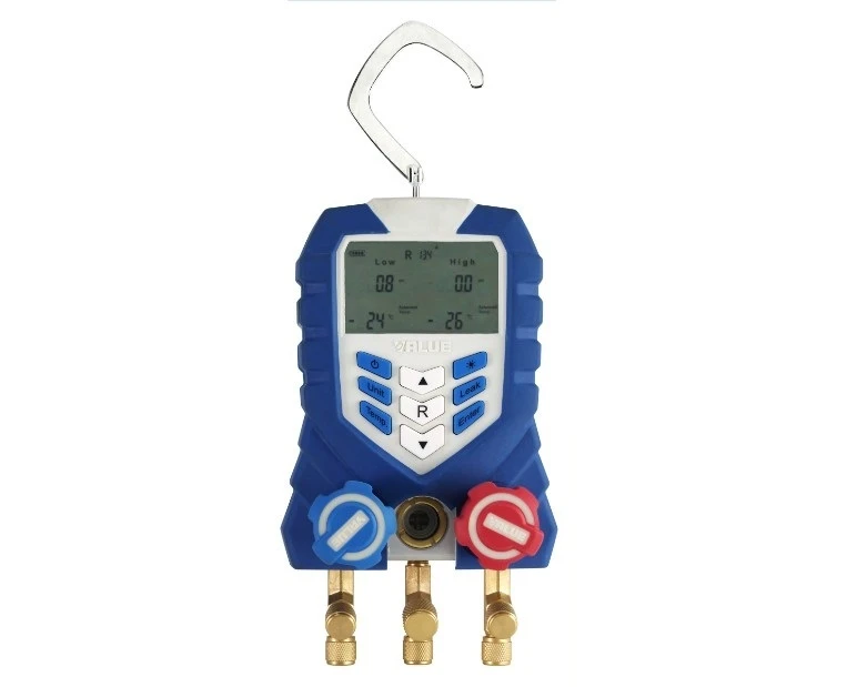 Le manifold digital VDG-1 est spécialement conçu pour la maintenance et le dépannage de systèmes de réfrigération. L’appareil ne doit être utilisé que par des personnes entrainées. Il intègre un manifold traditionnel, un détecteur de température, des manomètres pour réfrigérants, permettant la mesure de pressions et de températures. Il est conçu pour détecter la plupart des fluides réfrigérants non-corrosifs, eau, alcools, etc. Il ne convient pas pour les réfrigérants à base d’amoniac. L’appareil ne convient pas pour un environnement nécessitant un équipement anti-explosion.