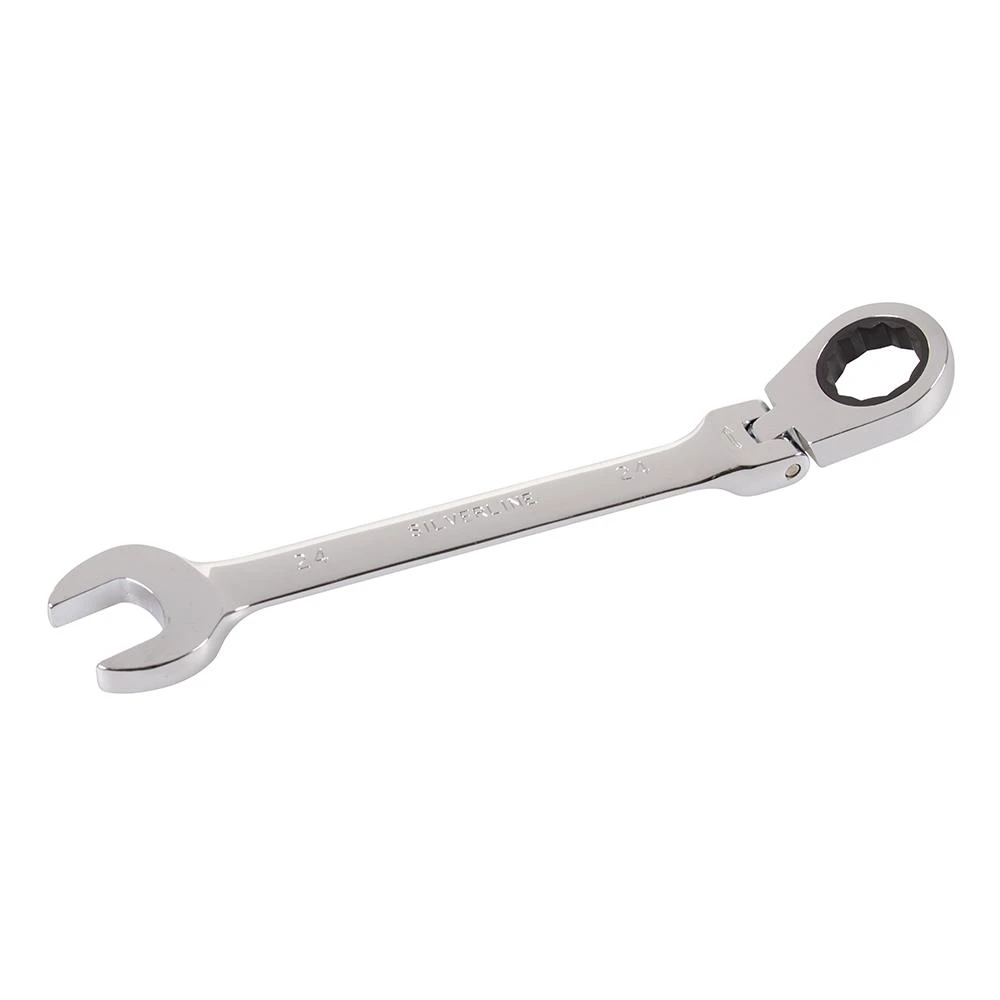 Clé mixte à cliquet de dimensions métriques. En acier chrome-vanadium durci et revenu avec fini poli miroir. Chromée, pour résister à la corrosion. Cliquet avec angle d’action de 5°. Tête pivotante à 180°. Facilite l’accès à boulons et écrous présents dans des espaces exigus.