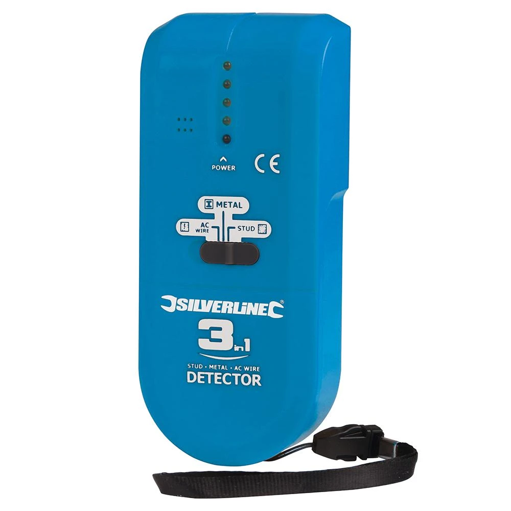 | Détecteur 3-en-1 compact 1 pile 9 V (PP3) Silverline 477936 EAN 5055058179289 |