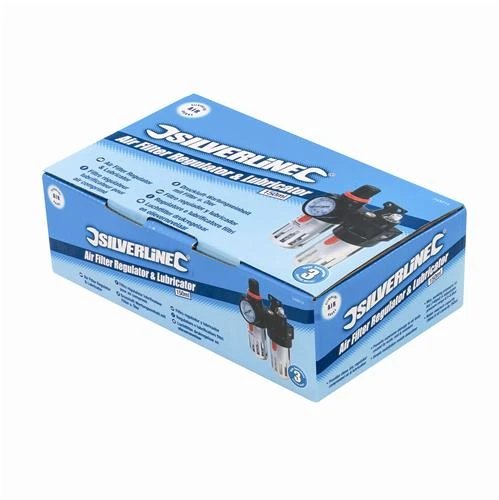 | Filtre régulateur lubrificateur pour air comprimé 150 ml Silverline 245014 EAN 5055058145178 |