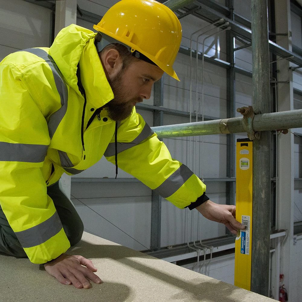 Niveau robuste en aluminium extrudé de 1,1 mm d’épaisseur avec faces supérieures et inférieures fraisées. Largeur de la section 51 mm. Fioles de contrôle 45°, 90° et 180°. Précision : 1 mm/m.