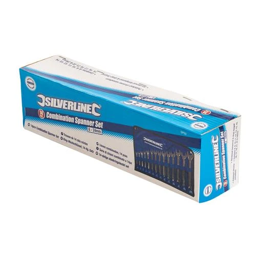 Extrémités fourche et bi-hexagonale avec une inclinaison de 15° pour plus d’accessibilité. En chrome-vanadium matricé, trempé et revenu. Finition entièrement polie de haute qualité. Trousse de rangement en nylon balistique ultra-résistant. Tailles : 8, 9, 10, 11, 12, 13, 14, 15, 16, 17, 19, 21, 22 et 24 mm.