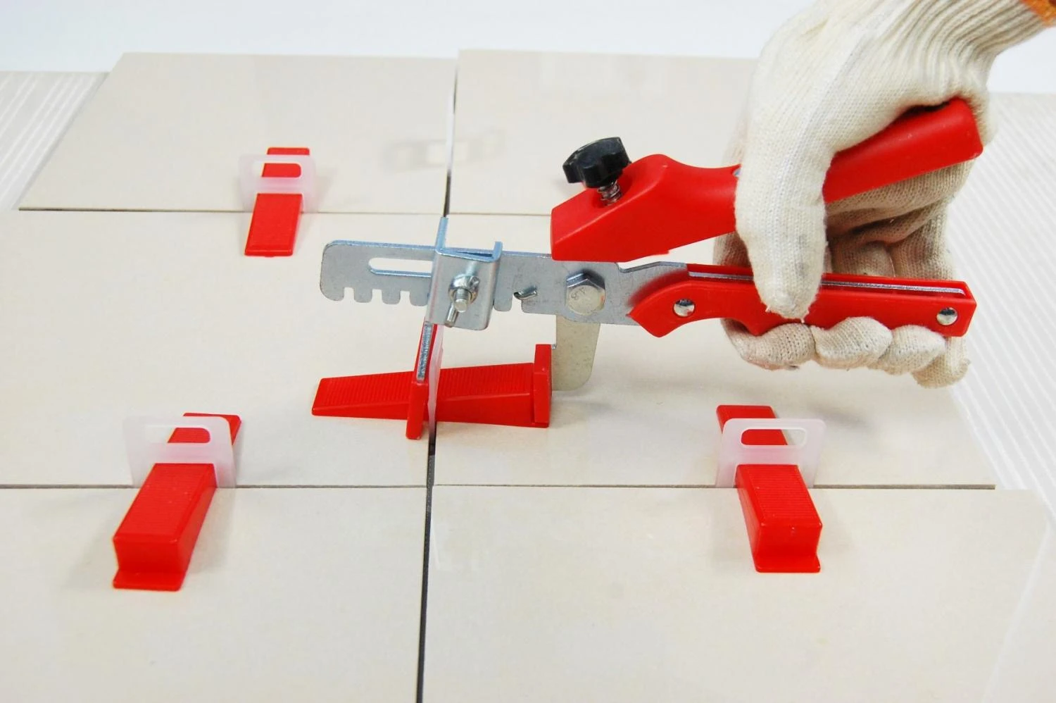 Les croisillons se mettent entre deux carreaux, et grâce à la pince dournie, vous mettrez la cale pour que les carreaux soient parfaitement alignés.